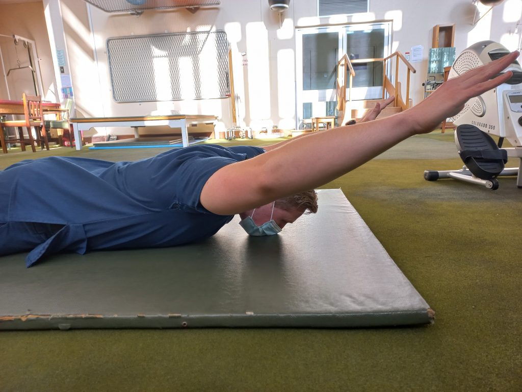 Step 1. Ley on your stomach, with your head looking up, you should be resting on your chin